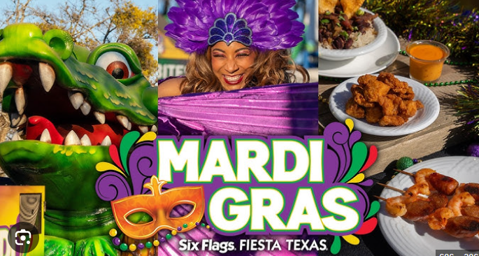 🎭 Six Flags Fiesta Texas – Mardi Gras Celebration